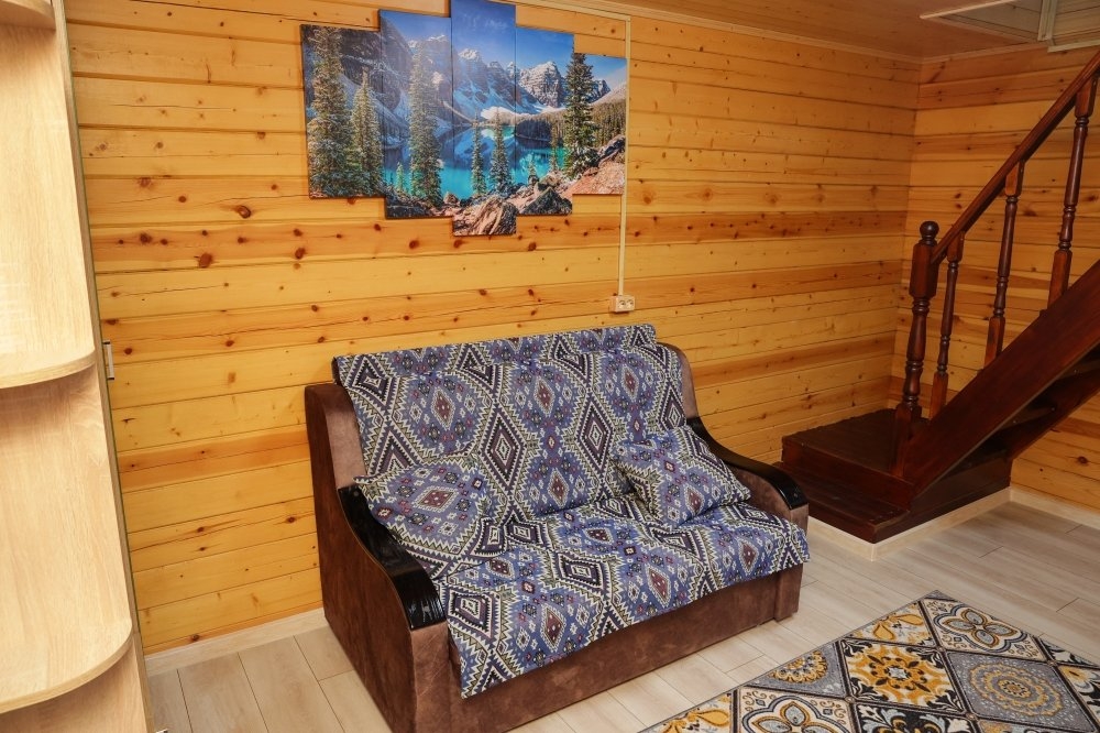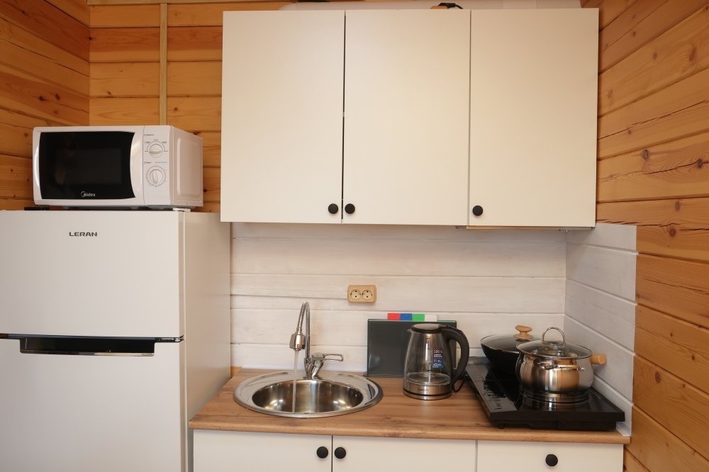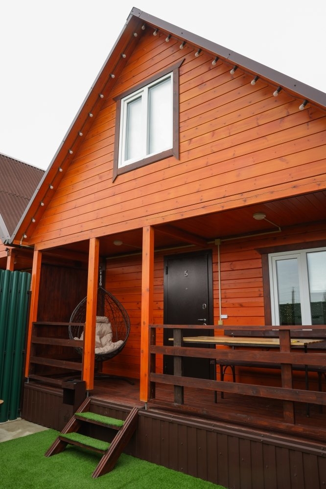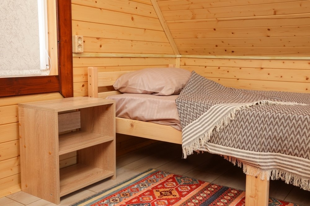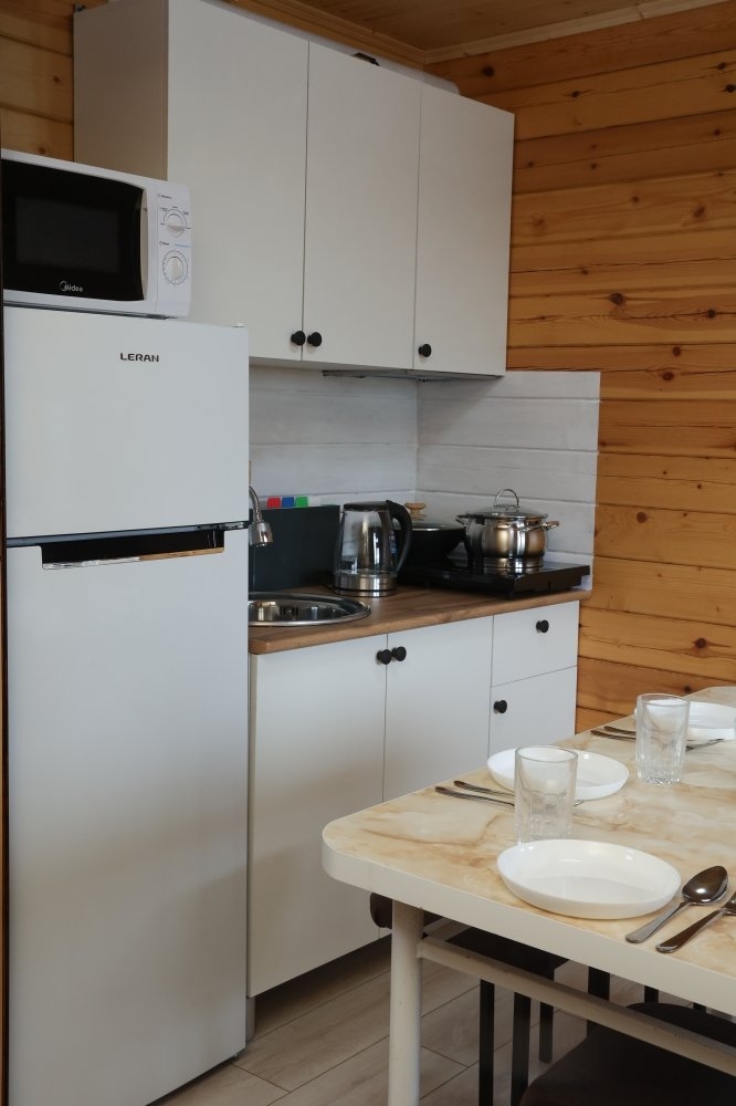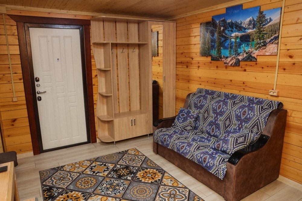 Семейные гостевые коттеджи из сибирской сосны оформлены в современном стиле с элементами минимализма, что создаёт атмосферу уюта и спокойствия. Домики рассчитаны на проживание шести человек, идеально подходят для семейного отдыха. Внутри уютно и комфортно, столовые приборы и имеется всё необходимое для комфортного пребывания. Бесплатная охраняемая стоянка.