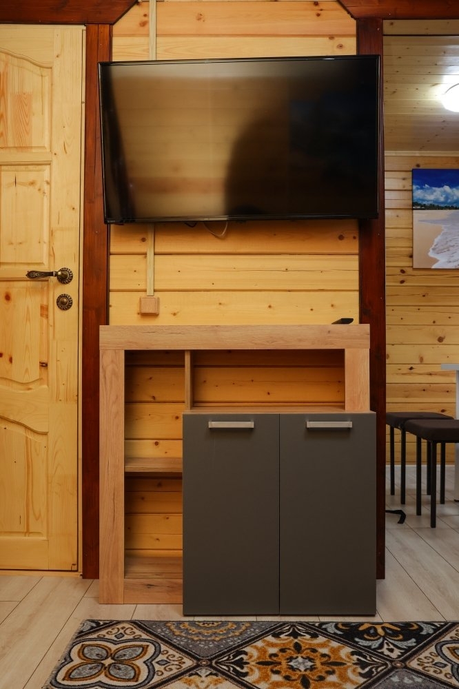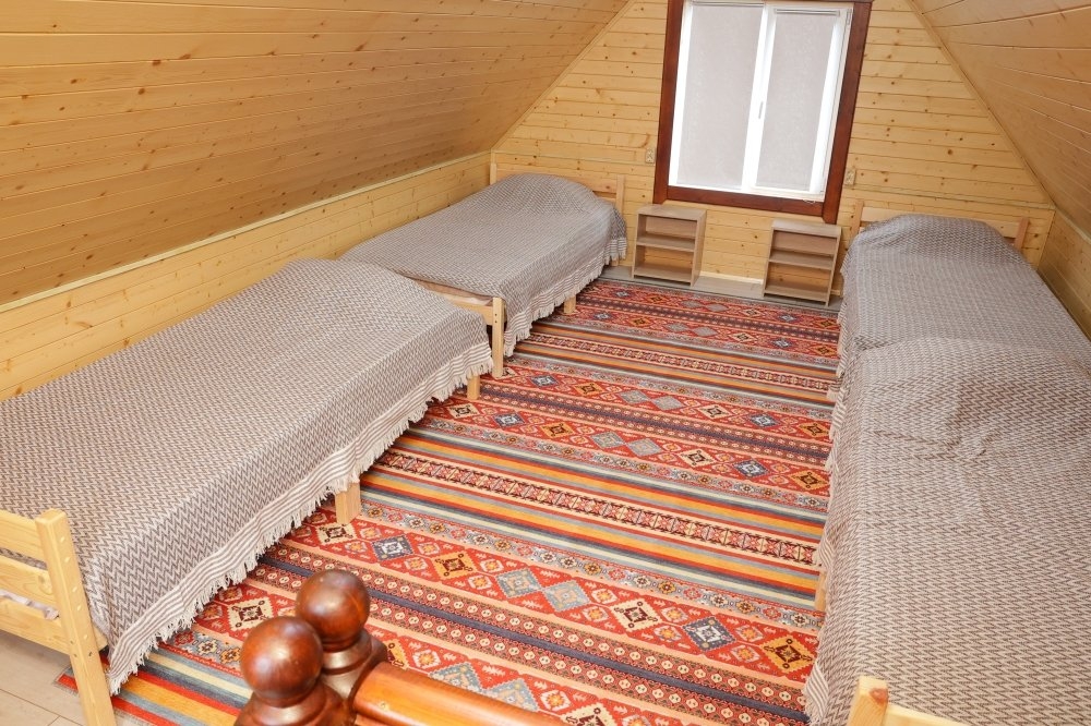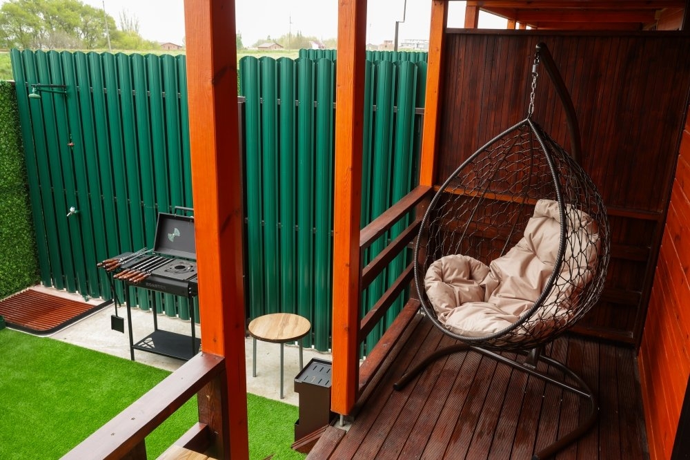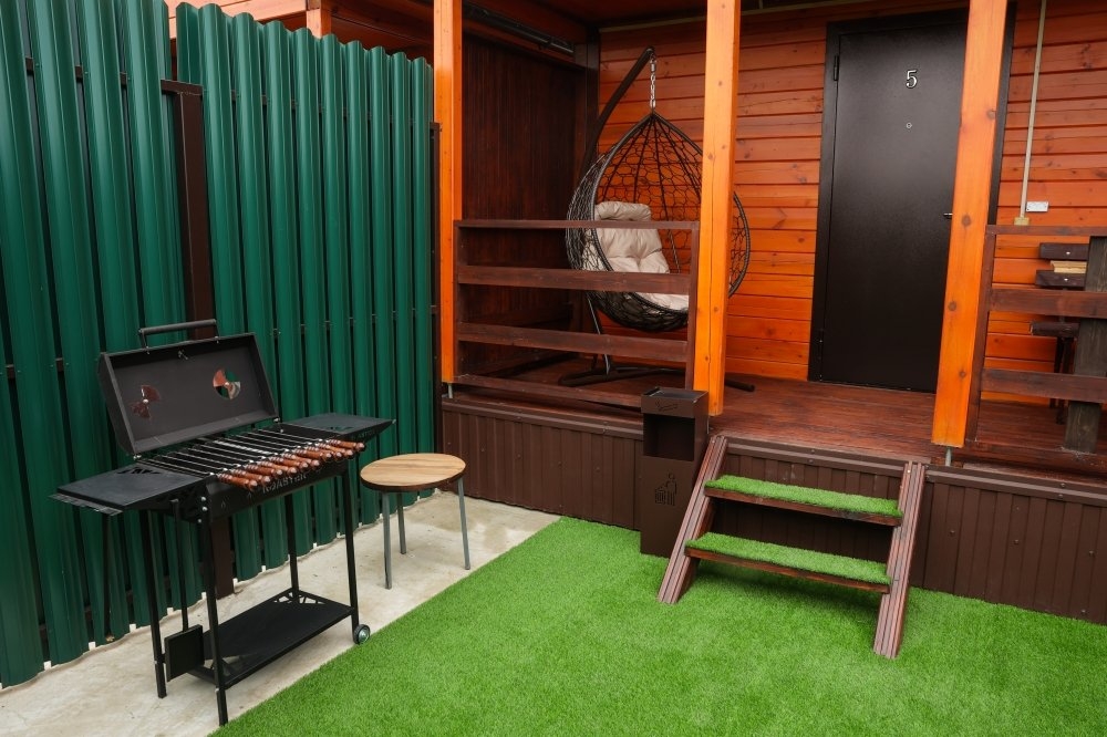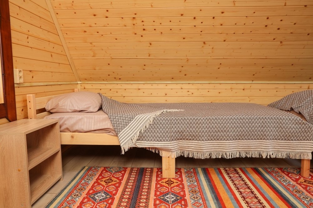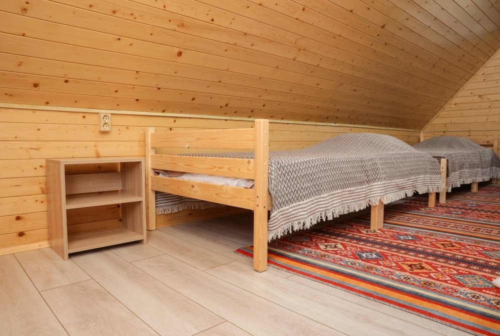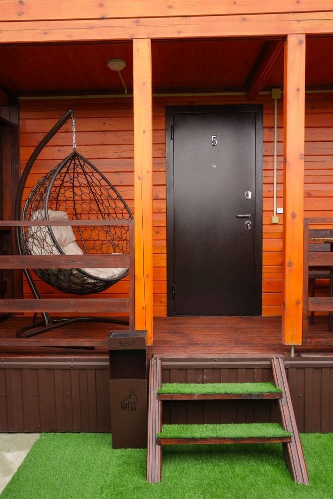 Семейные гостевые коттеджи из сибирской сосны оформлены в современном стиле с элементами минимализма, что создаёт атмосферу уюта и спокойствия. Домики рассчитаны на проживание шести человек, идеально подходят для семейного отдыха. Внутри уютно и комфортно, столовые приборы и имеется всё необходимое для комфортного пребывания. Бесплатная охраняемая стоянка.
